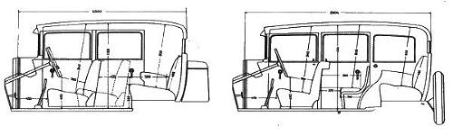 Nella IV serie il sistema frenante venne modificato adottando il comando idraulico tipo Lockheed sulle quattro ruote. Figura 13 Prospetti di arredamento interno